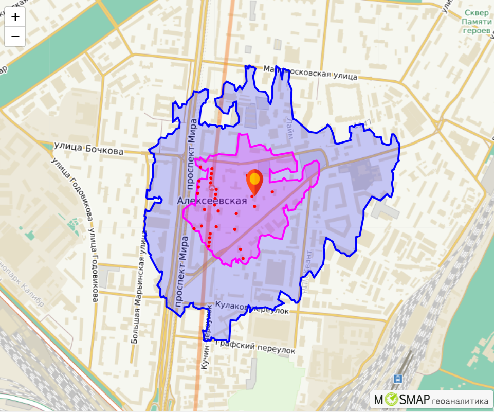 Наложение и анализ карт пешеходного траффика на радиус зоны пешеходной доступности поможет принять обоснованное решение и обеспечить успех бизнесу.