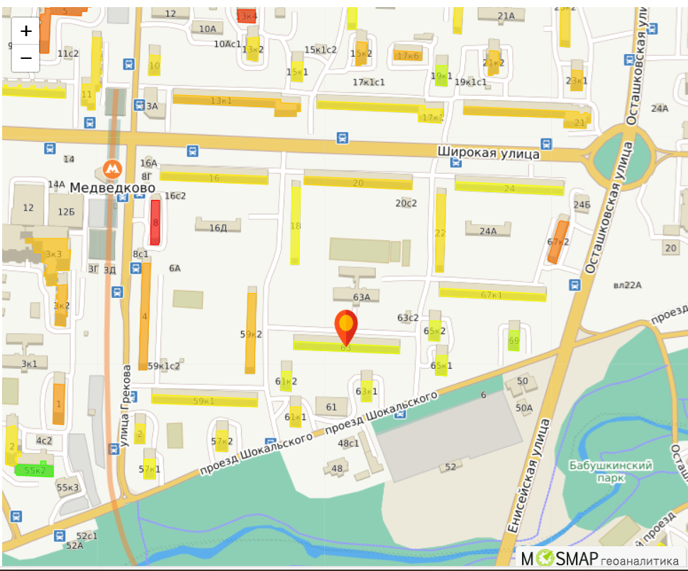 Выбираем на карте московского региона интересующий нас адрес, кликаем по ссылке и приступаем к анализу данных.