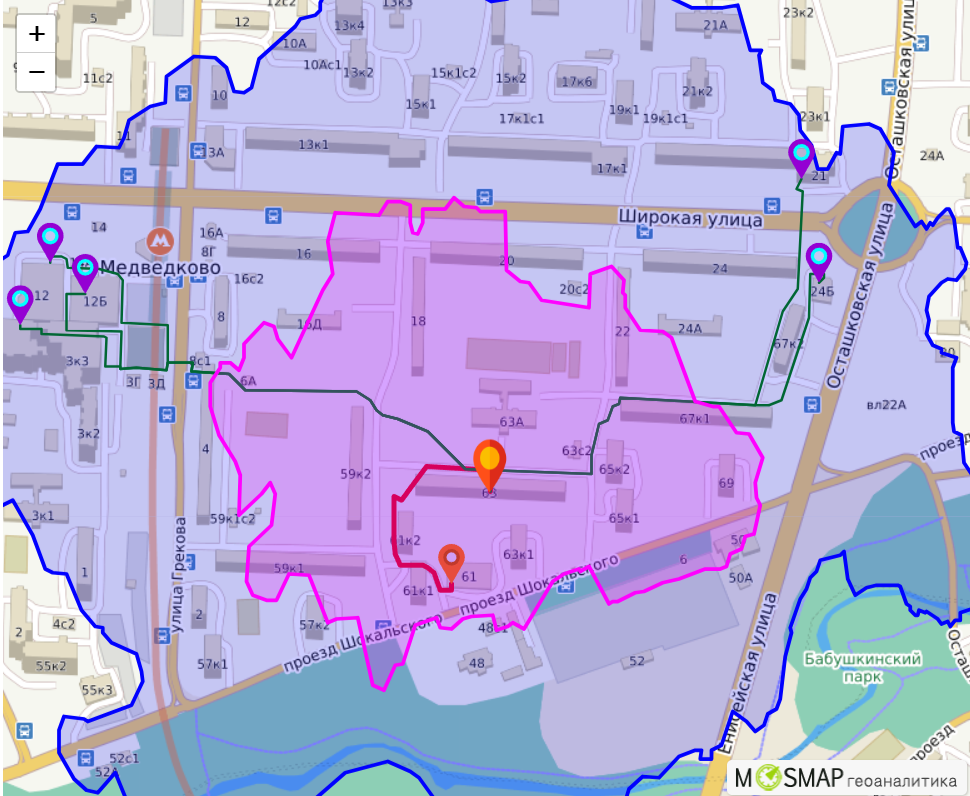 При планировании бизнеса одним из ключевых факторов является радиус зоны пешеходной доступности. Он определяет, насколько удобно будет клиентам добираться до вашей торговой точки и совершать покупки. Наш сервис покажет, что входит в зону доступности для вашего адреса или точки.